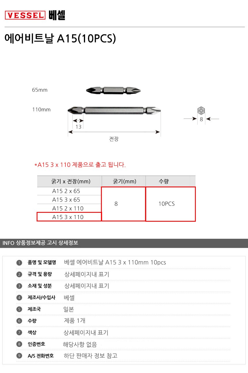 베셀 에어비트날 A15 3 x 110mm 10pcs 공구 수공구 수작업공구 수작업 작업공구