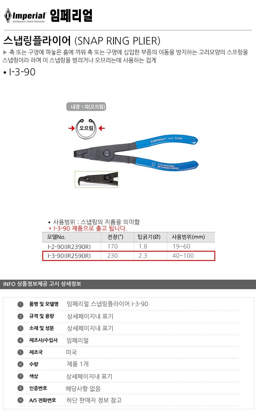 임페리얼 스냅링플라이어 I-3-90 공구 수공구 수작업공구 수작업 작업공구