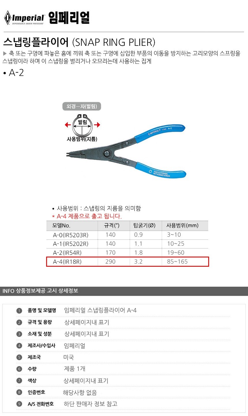 임페리얼 스냅링플라이어 A-4 공구 수공구 수작업공구 수작업 작업공구