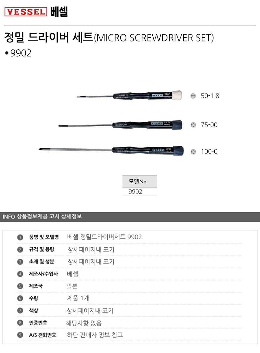 베셀 정밀드라이버세트 9902 공구 수공구 수작업공구 수작업 작업공구 이미지/