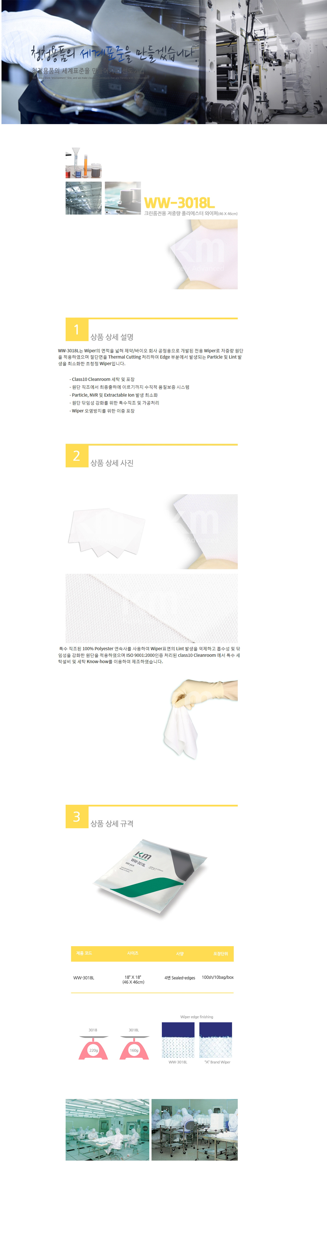케이엠 크린룸 폴리에스터와이퍼 저중량특대형WW3018L