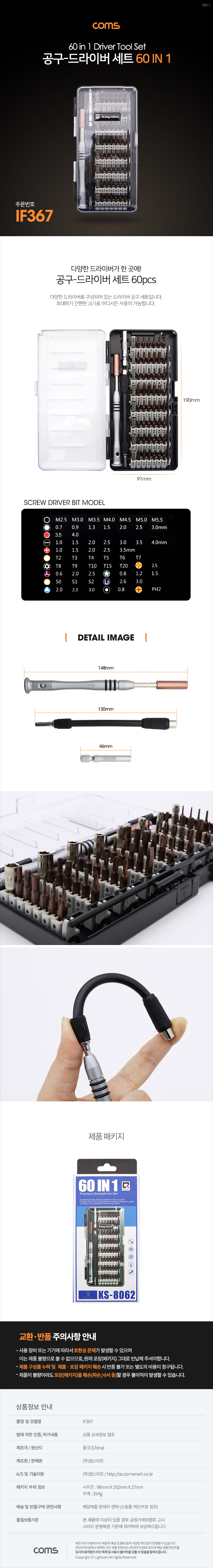 Coms 드라이버 세트 60 in 1 다용도 멀티 공구 스크류 드라이버 비트 십자 일자 별