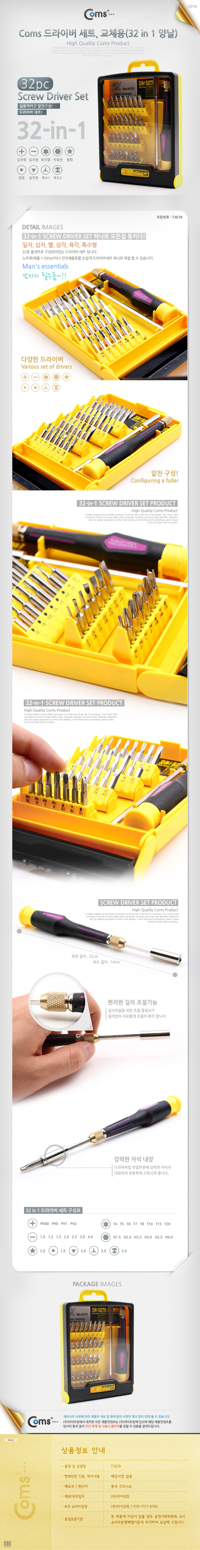 Coms 드라이버 세트 32 in 1 다용도 멀티 공구 양날 스크류 드라이버 비트 십자 일