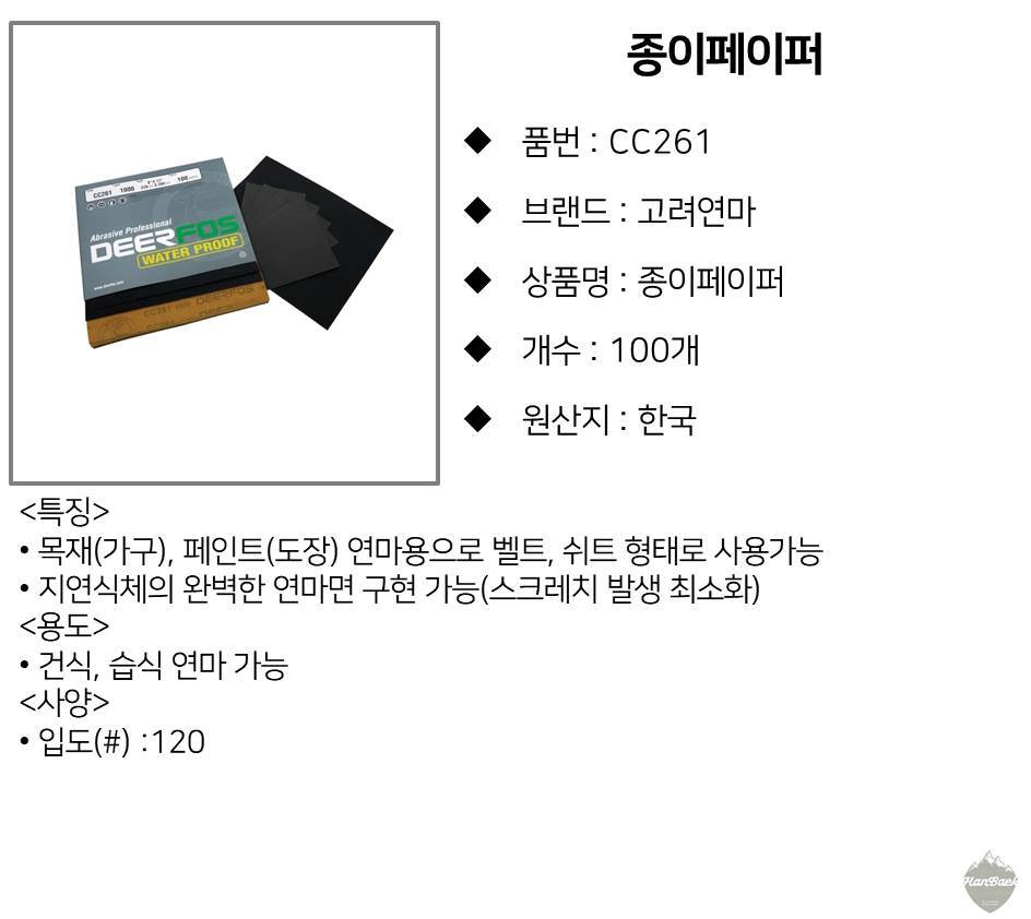 고려연마 종이페이퍼 샌드페이퍼 CC261 393-5044 이미지/