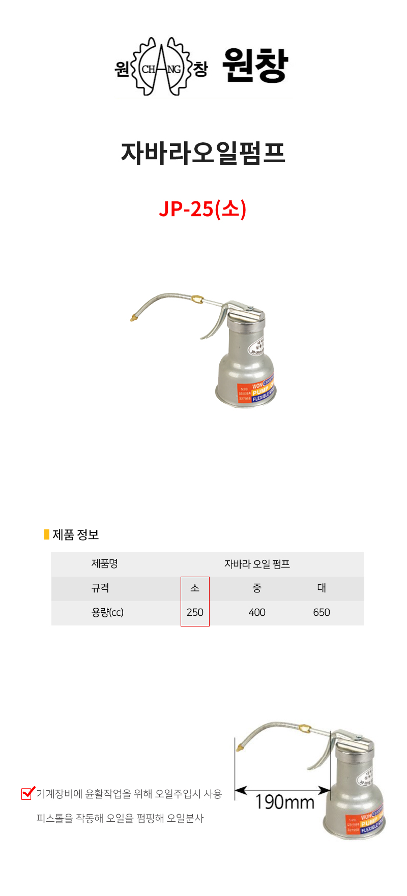 강력한 분사력 휴대용 자바라오일펌프(소)jp-25 이미지/