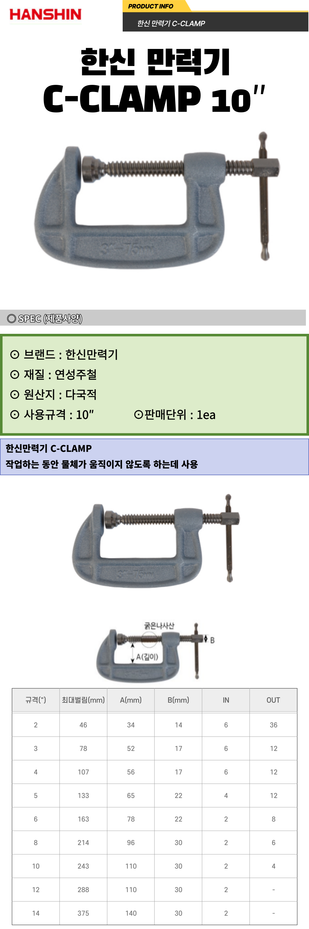 한신만력기 C형 고정 바이스 C형클램프 10인치