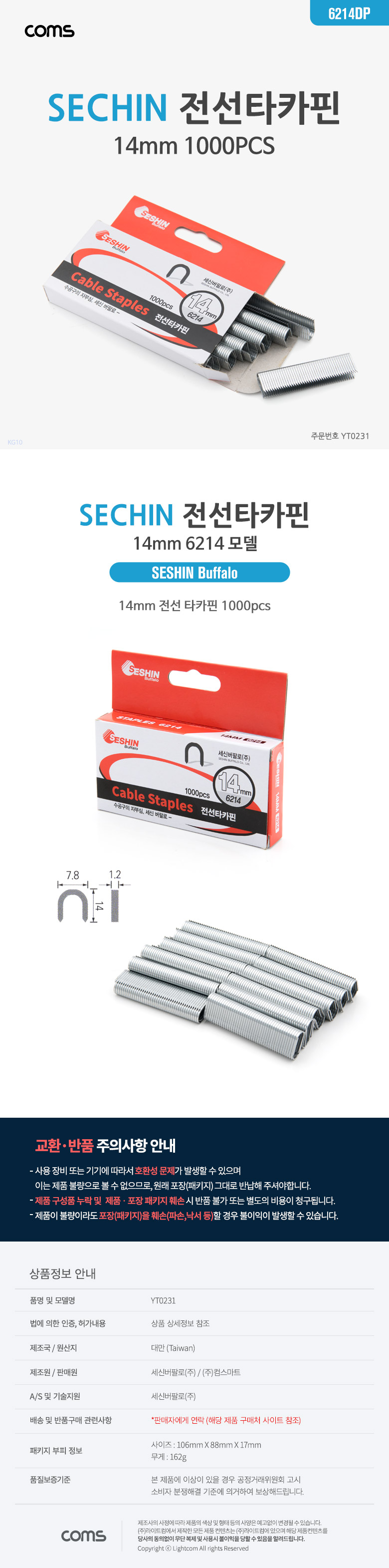 Coms U타카핀 6214DP 전선 타카핀