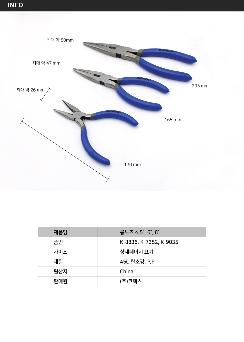 코텍 롱로즈 6K 플라이어 롱노우즈 방울집게 뺀치 이미지/