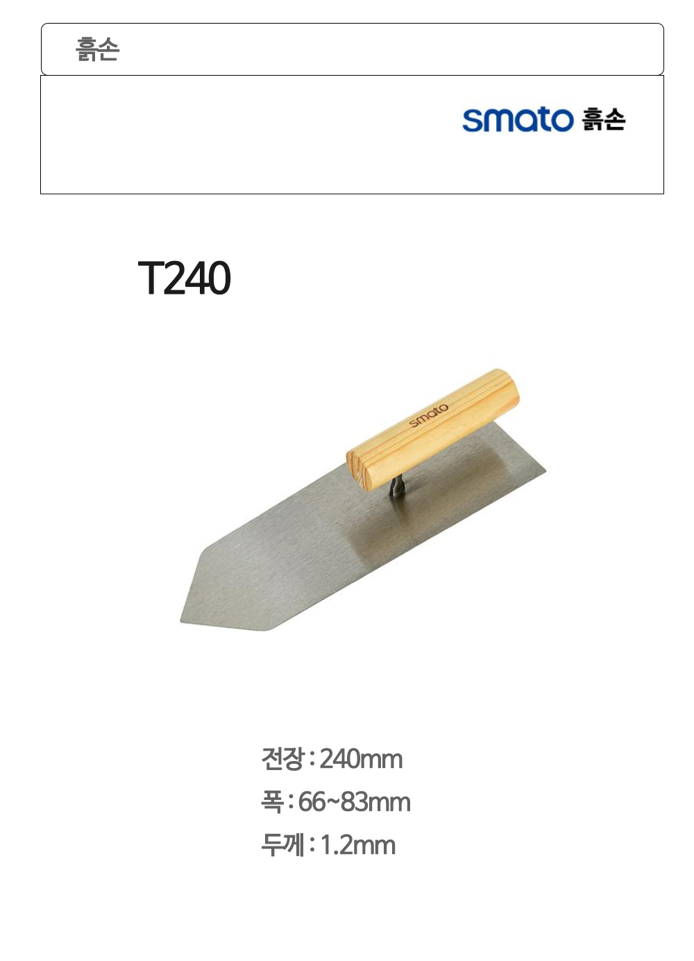 스마토 흙손 미장 미장칼 고대 240x(66-83)x1.2mm