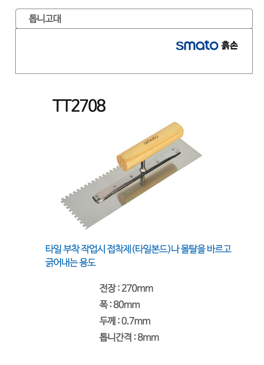 스마토 흙손 미장 미장칼 사각 톱니고대 270x80x0.7x8mm 이미지/