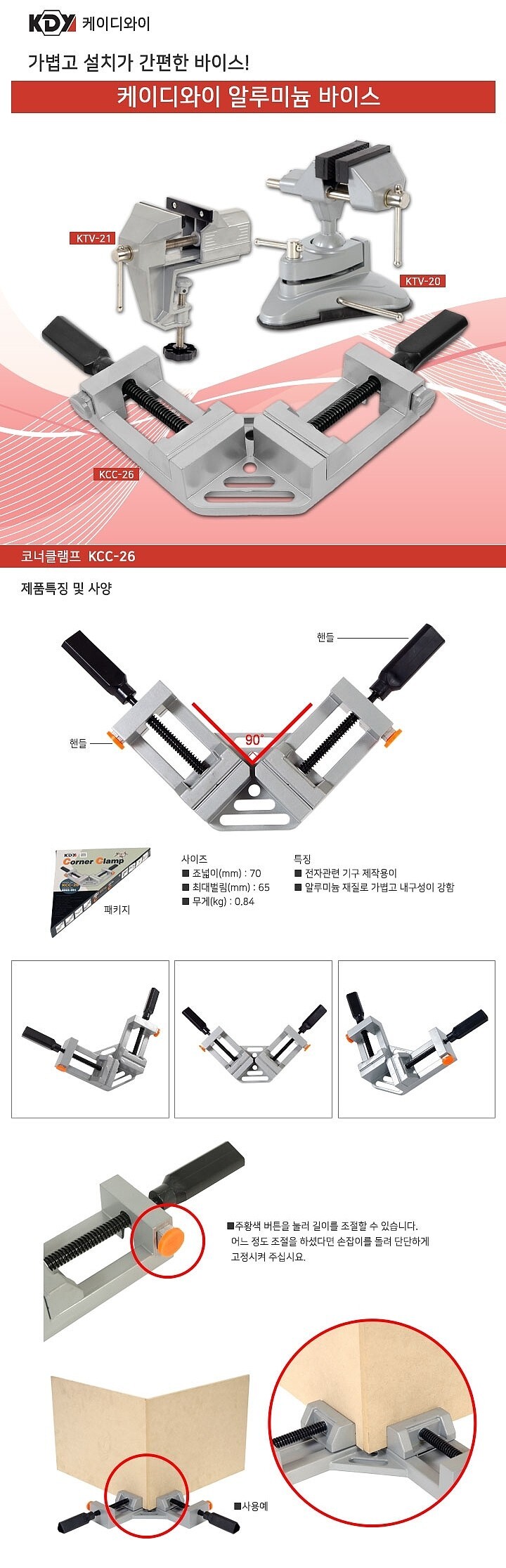 알루미늄 바이스 코너클램프 전자기구제작 공구도구