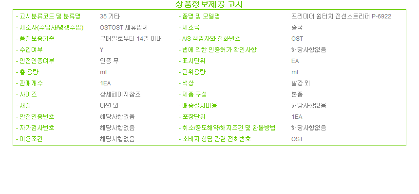 제조자 상품상세설명에 표기