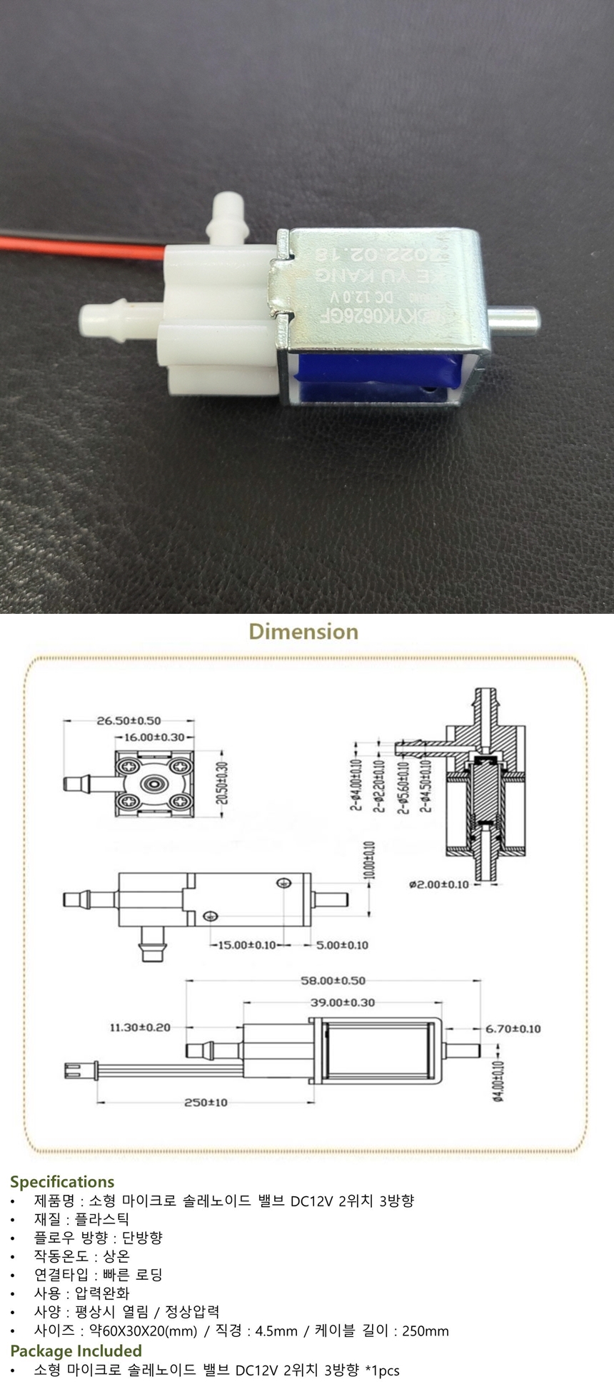 DC12V 소형 미니 마이크로 솔레노이드밸브 2위치 3방향