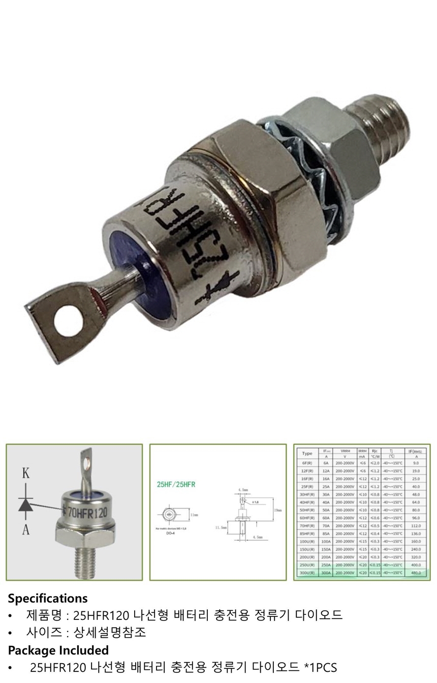 25HFR120 배터리 충전용-정류기 다이오드 1pcs 이미지/