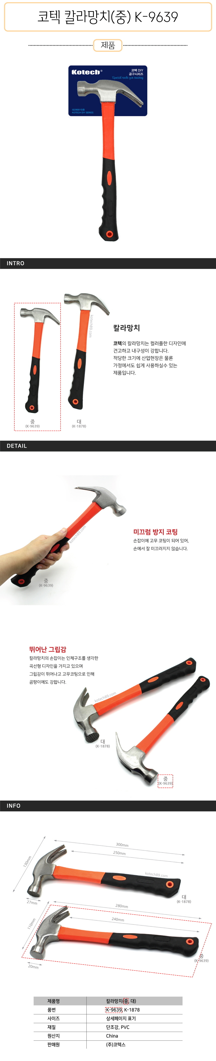 코텍 칼라망치 (중) K-9639-D 이미지/