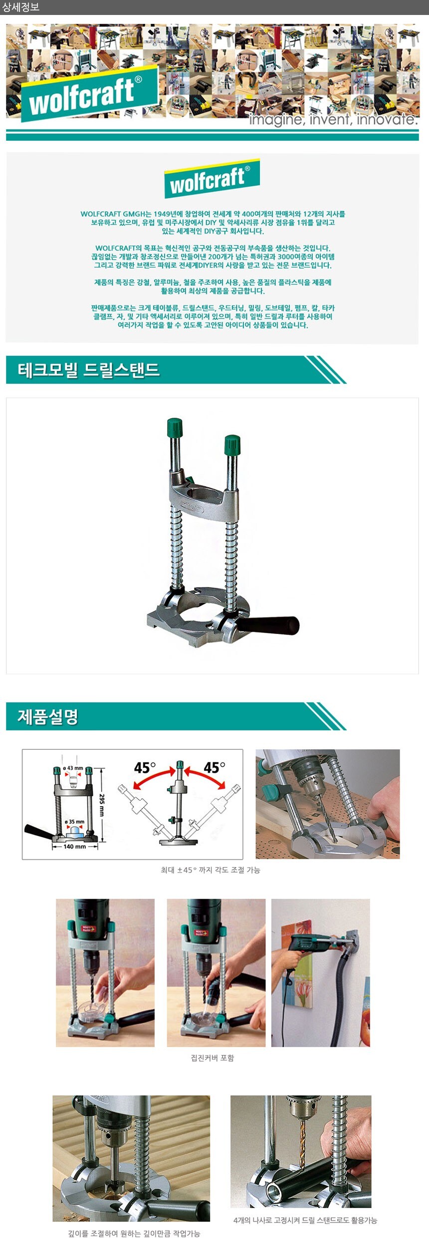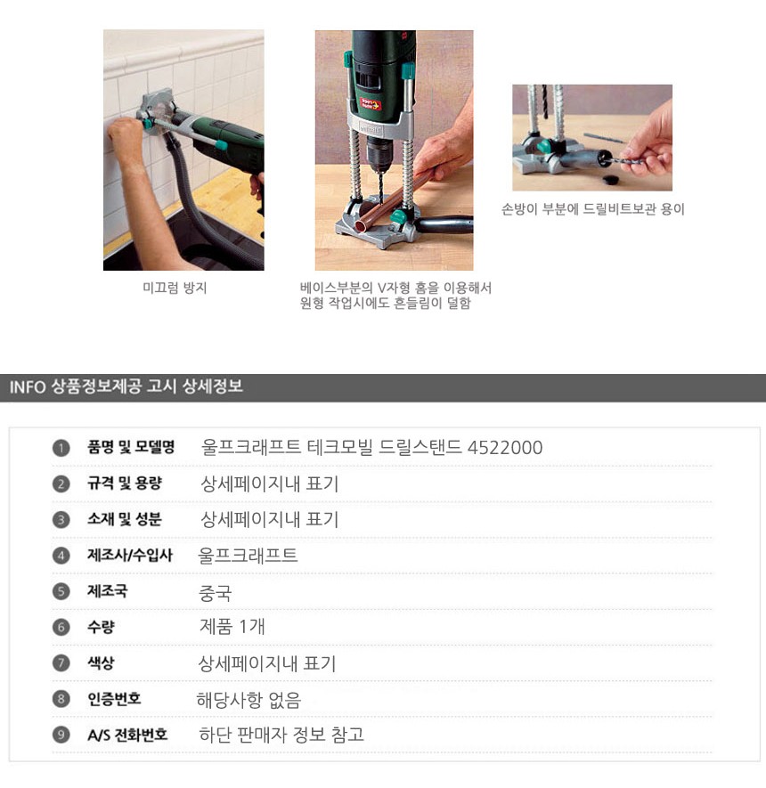 울프크래프트 테크모빌 드릴스탠드 4522000 공구 수공구 수작업공구 수작업 작업공구 이미지/