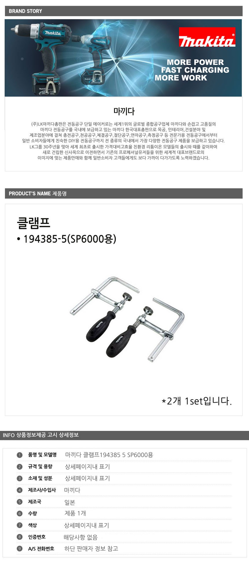 마끼다 클램프194385 5 SP6000용 공구 수공구 수작업공구 수작업 작업공구