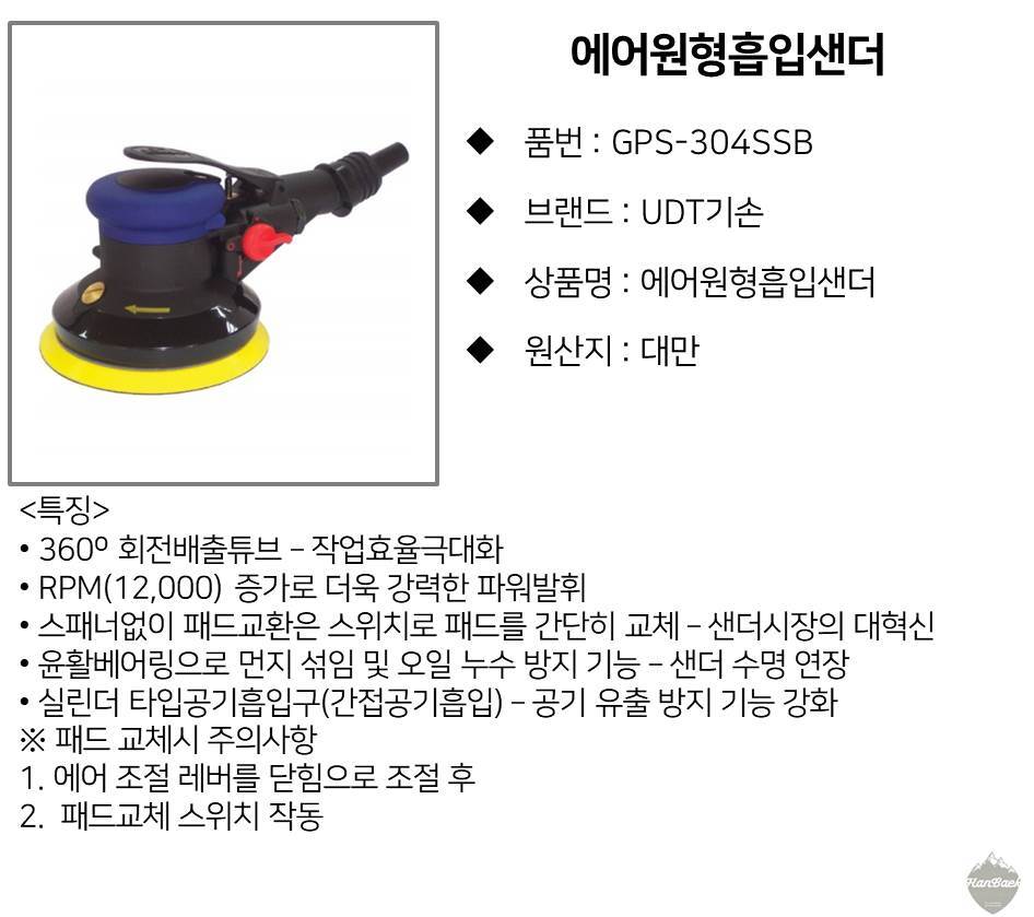 UDT기손 에어원형흡입샌더 흡인샌더 603-0155 이미지/