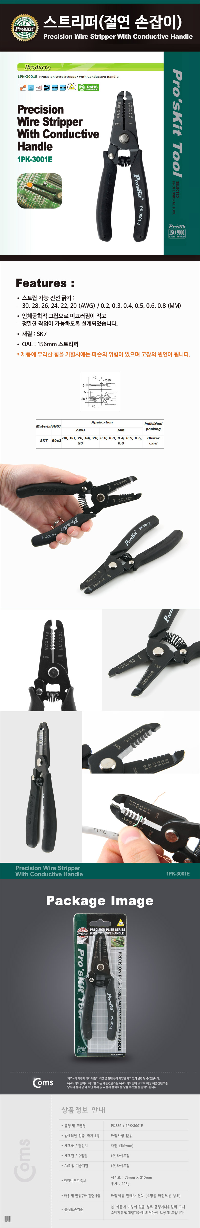 PROKIT(1PK-3001E) 스트리퍼(절연 손잡이) 와이어 케이블 피복 제거