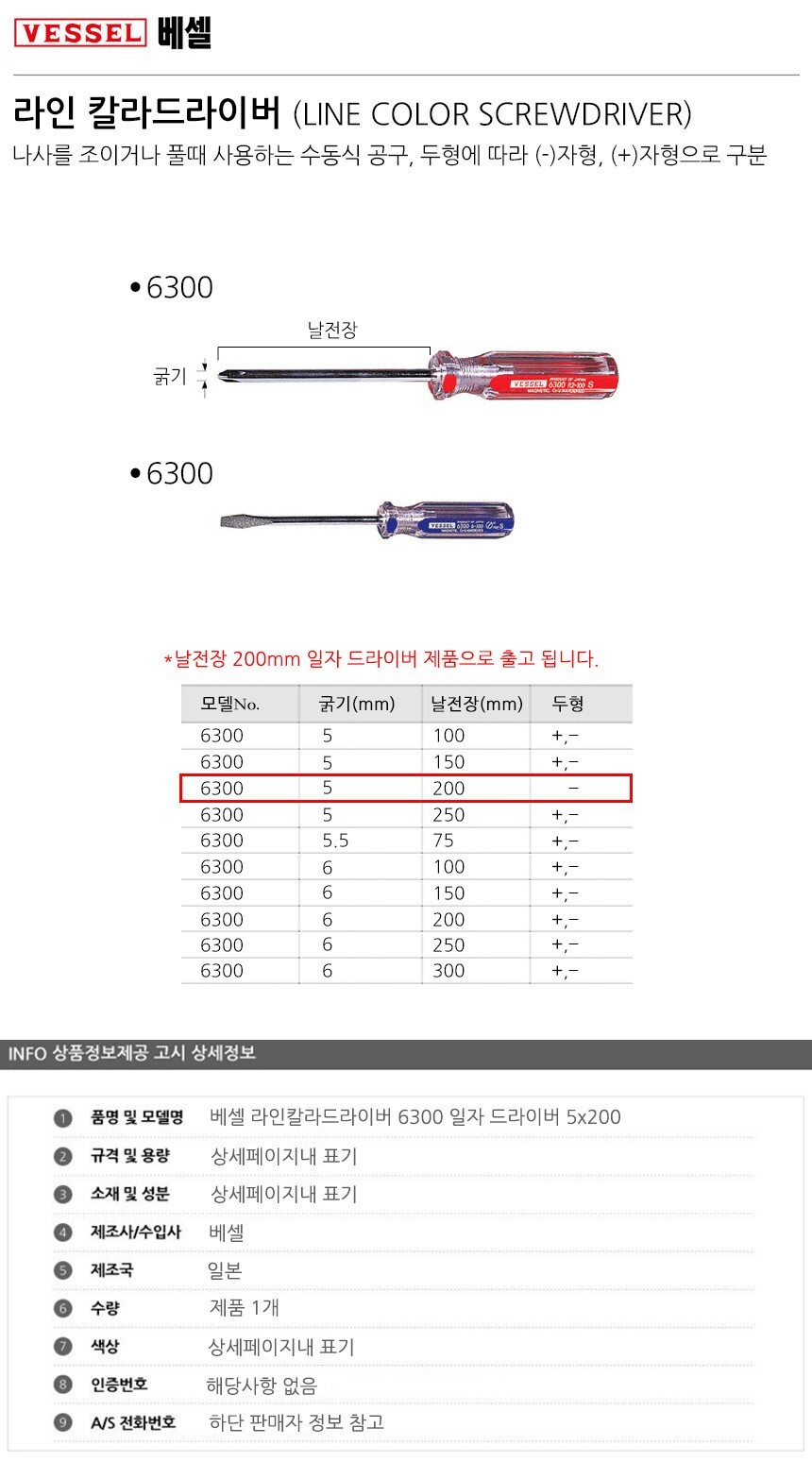 베셀 라인칼라드라이버 6300 일자 드라이버 5x200 이미지/