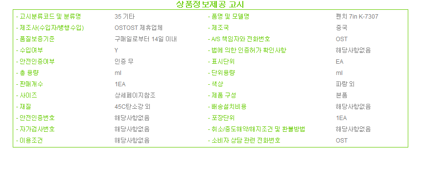 • 반품/환불조건: 도착후 1주일 이내 사용하지 않은 상태에서 가능합니다,초기제품 이상의 경우 동일한 제품으로 1:1 교환원칙, 사용후 제품이상은 A/S를 원칙으로 합니다,