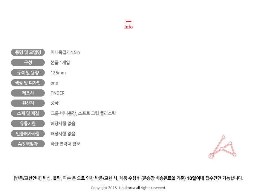 • 반품/환불조건: 도착후 1주일 이내 사용하지 않은 상태에서 가능합니다,초기제품 이상의 경우 동일한 제품으로 1:1 교환원칙, 사용후 제품이상은 A/S를 원칙으로 합니다,