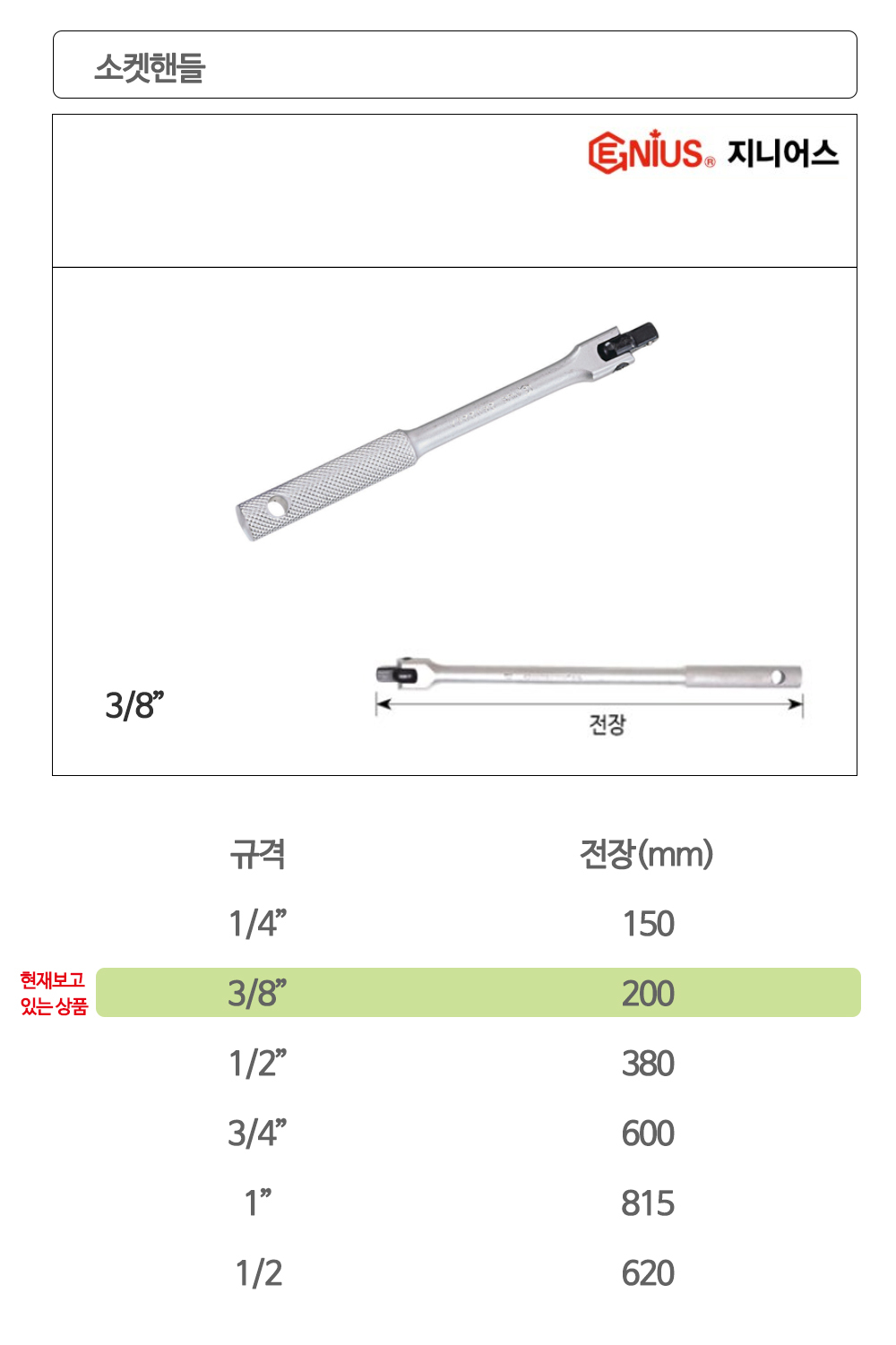지니어스 소켓핸들 복스대 3/8in x 200mm 이미지/