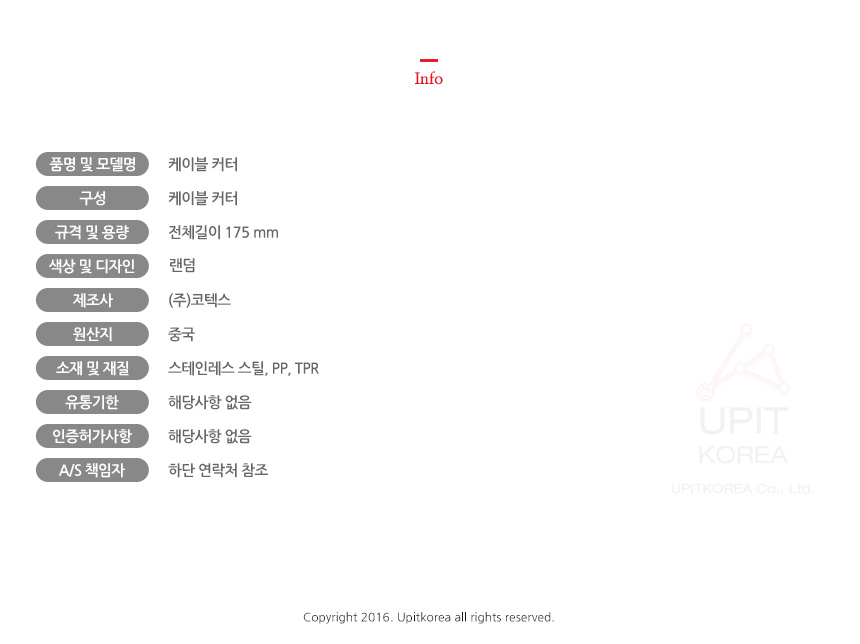 1. 품명 및 모델명 : 상세정보별도표시