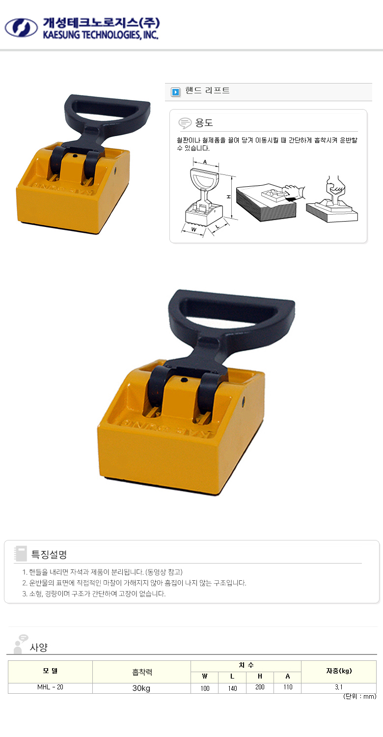[개성마그네트]핸드 리프트MHL-20 이미지/