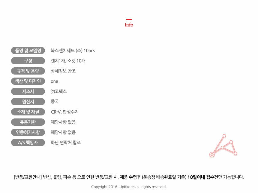 • 반품/환불조건: 도착후 1주일 이내 사용하지 않은 상태에서 가능합니다,초기제품 이상의 경우 동일한 제품으로 1:1 교환원칙, 사용후 제품이상은 A/S를 원칙으로 합니다,