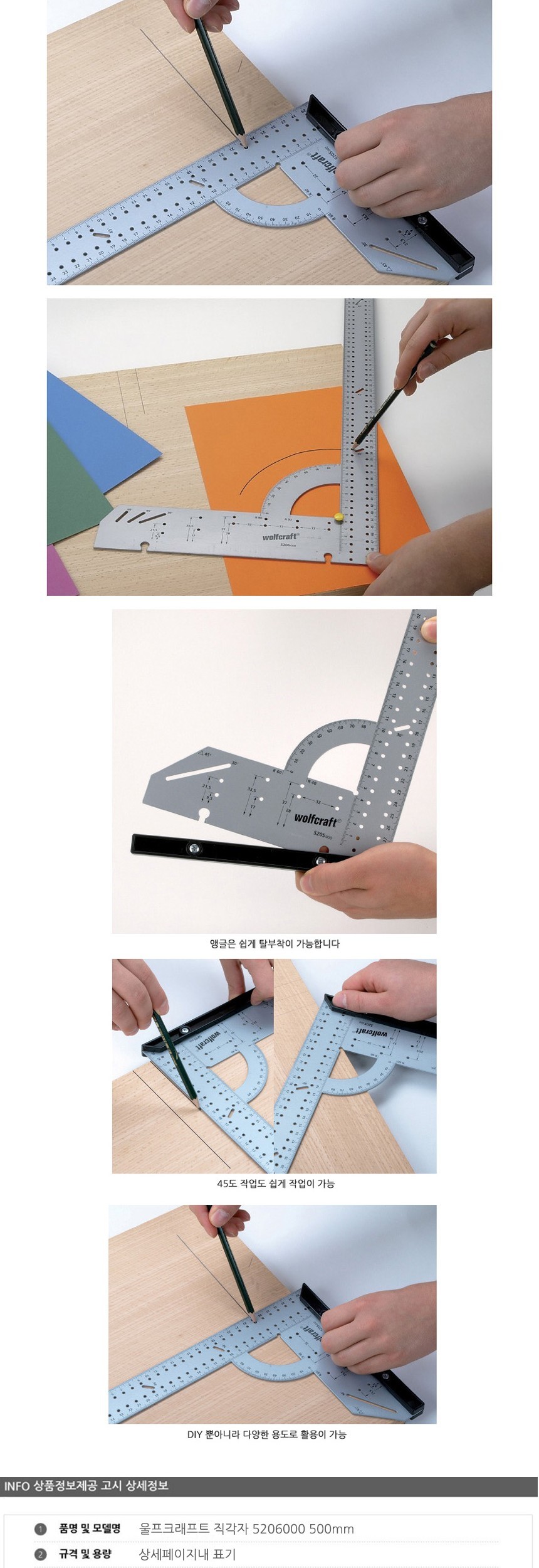 울프크래프트 직각자 5206000 500mm 공구 수공구 수작업공구 수작업 작업공구 이미지/