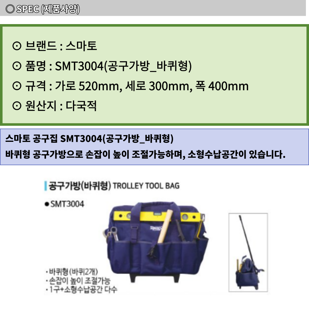 스마토 다용도 휴대용 바퀴형 산업 공구가방 SMT3004 이미지/