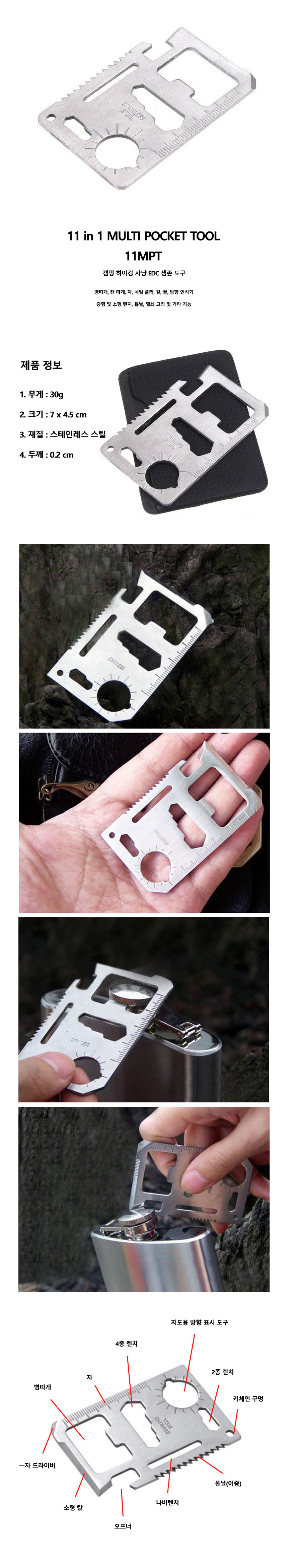 11in1 멀티포켓툴/병따개/미니톱/미니나이프/드라이버/렌치/멀티공구/다용도