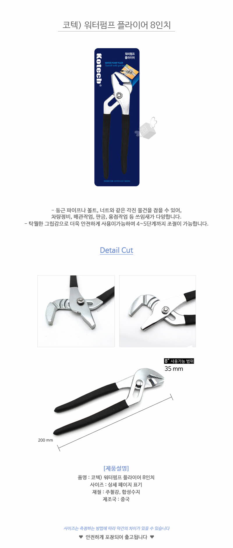 코텍 워터 펌프 플라이어8inch (K-0970) 이미지/