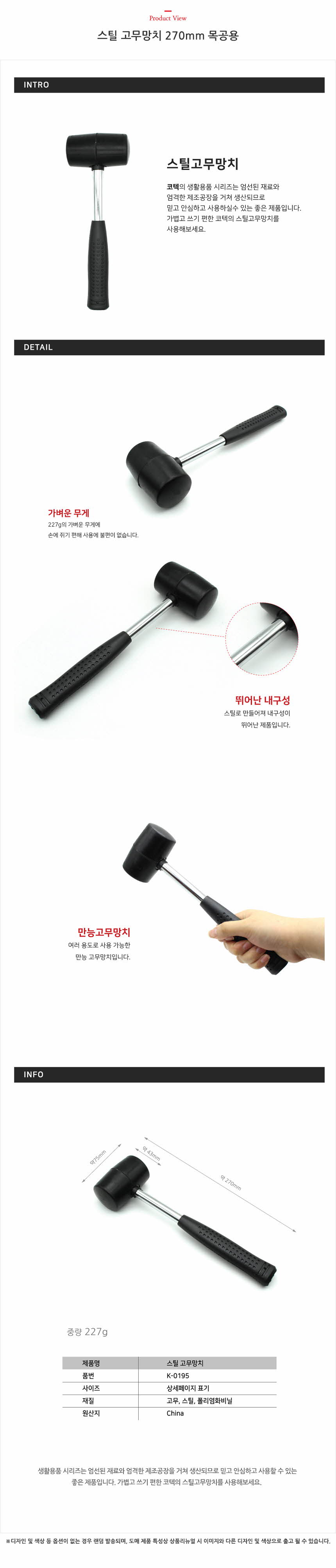 스틸 고무망치 270mm 목공용
