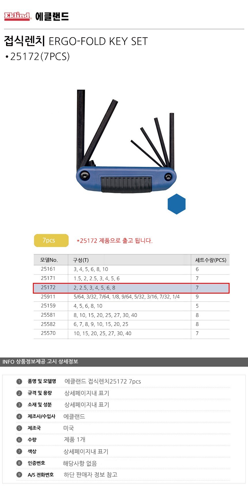 에클랜드 접식렌치25172 7pcs 공구 수공구 수작업공구 수작업 작업공구