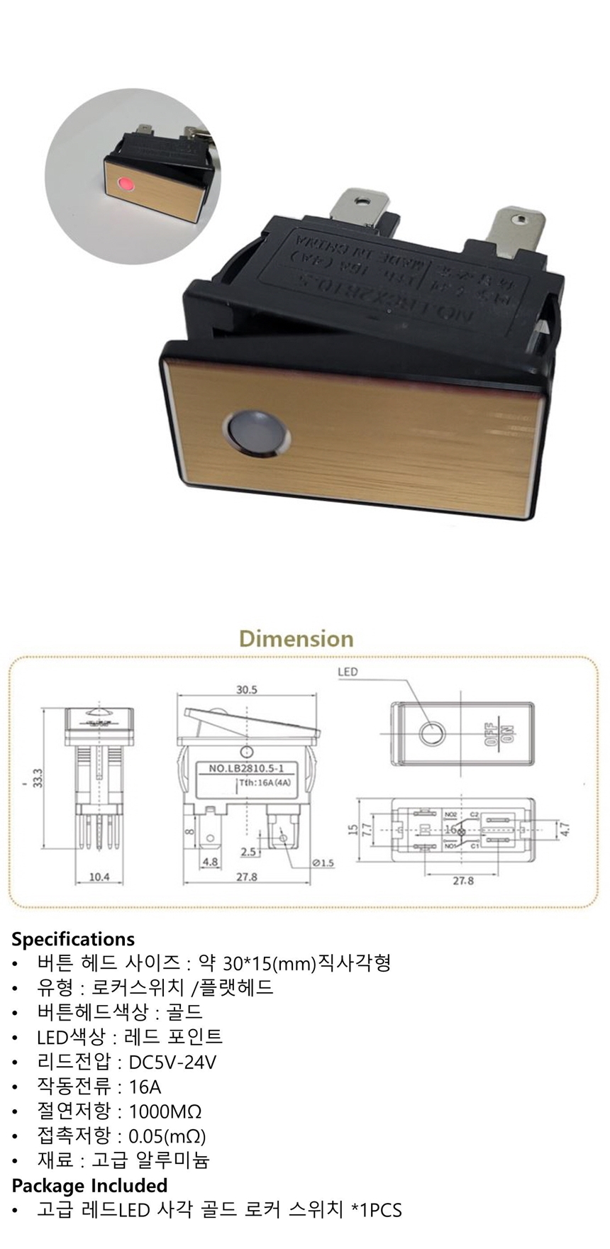 고급 사각 골드 로커 스위치 레드 LED 포인트 이미지/