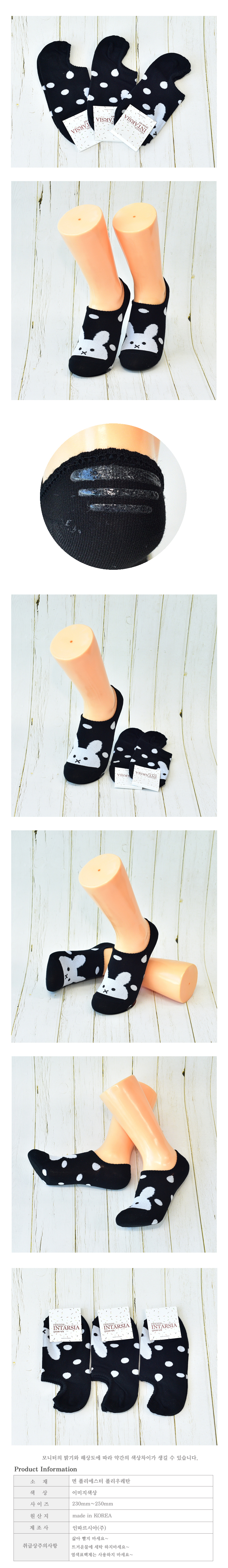 여성 벗겨짐방지 땡땡이 토끼 페이크삭스 여자덧신 여자양말검정 3켤레) 이미지/