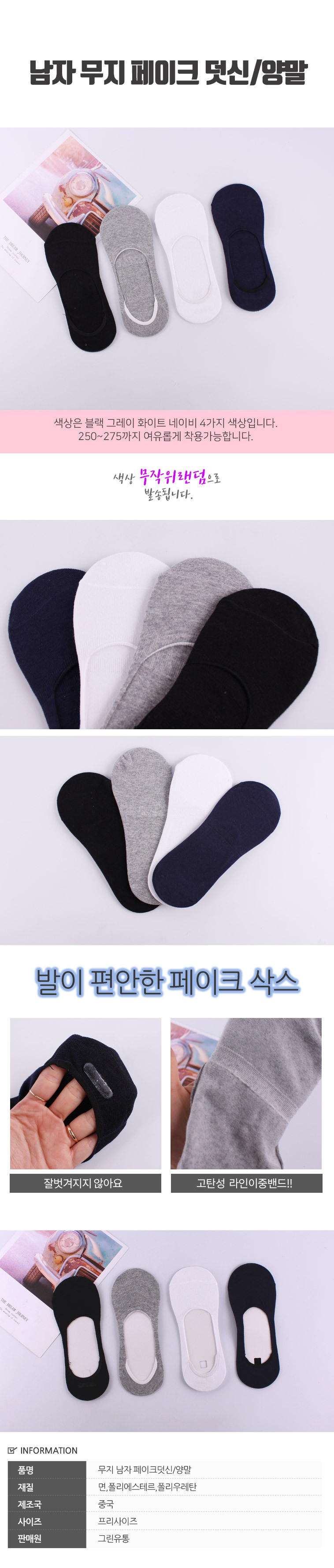 남자 페이크덧신 무지(색상랜덤) 이미지/