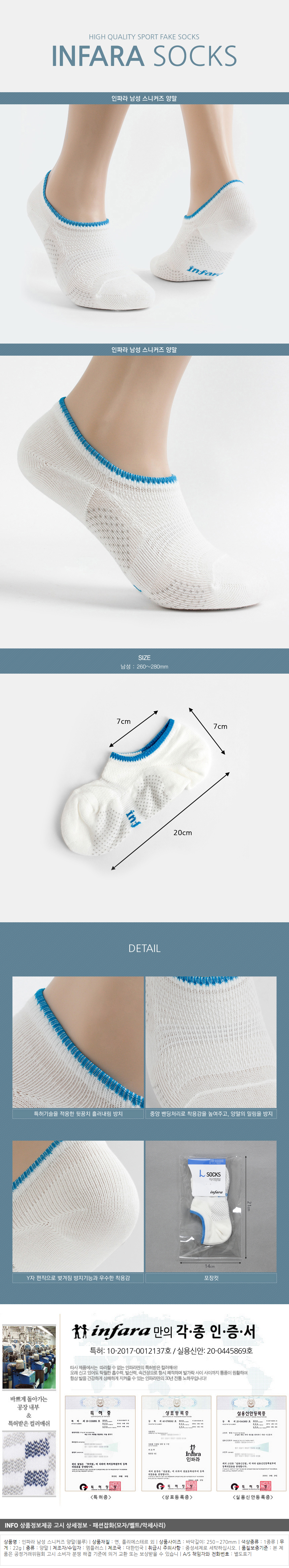 인파라 남성 단목 스니커즈 양말 남자양말 (블루) 이미지/