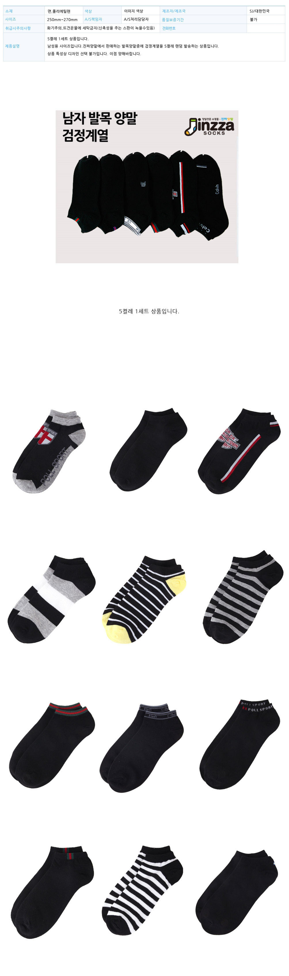 국산 남성 캐주얼 발목양말(검정계열) 5켤레 묶음 이미지/