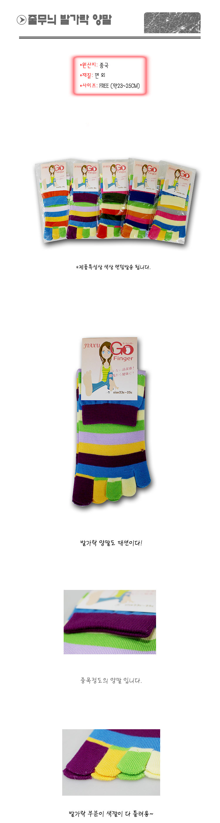여성용 줄무늬 발가락 양말 이미지/