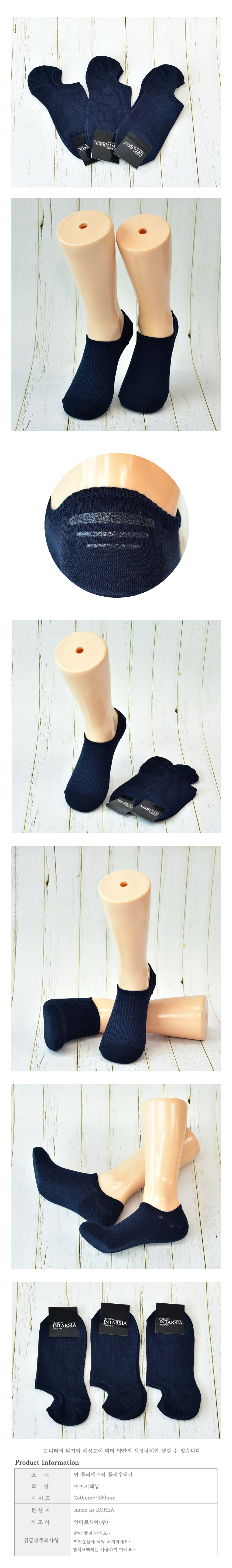 남성 벗겨짐방지 골지무지 페이크삭스 남자덧신 남자양말(진네이비 3켤레) 이미지/