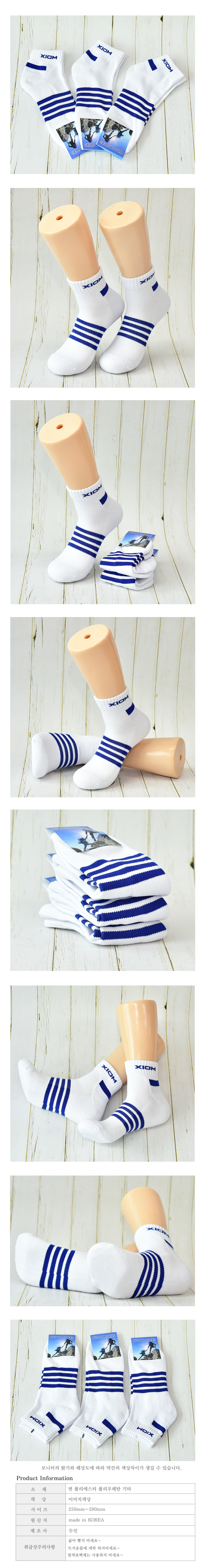 남성 파란줄무늬 파일 단목 스포츠양말 남자양말(흰색 3켤레) 이미지/