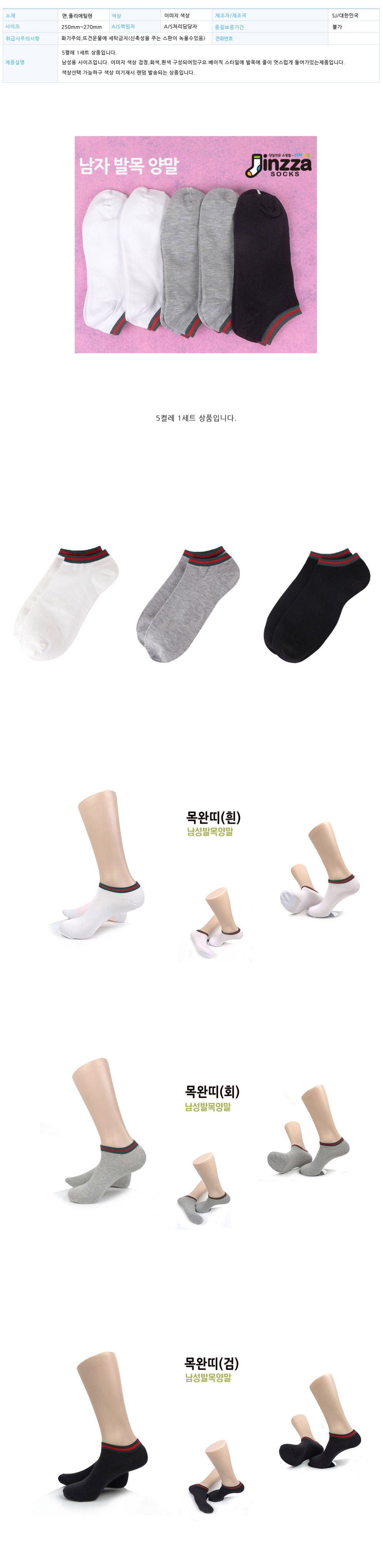 국산 남성 캐주얼 발목양말(목완띠) 5켤레 묶음 이미지/