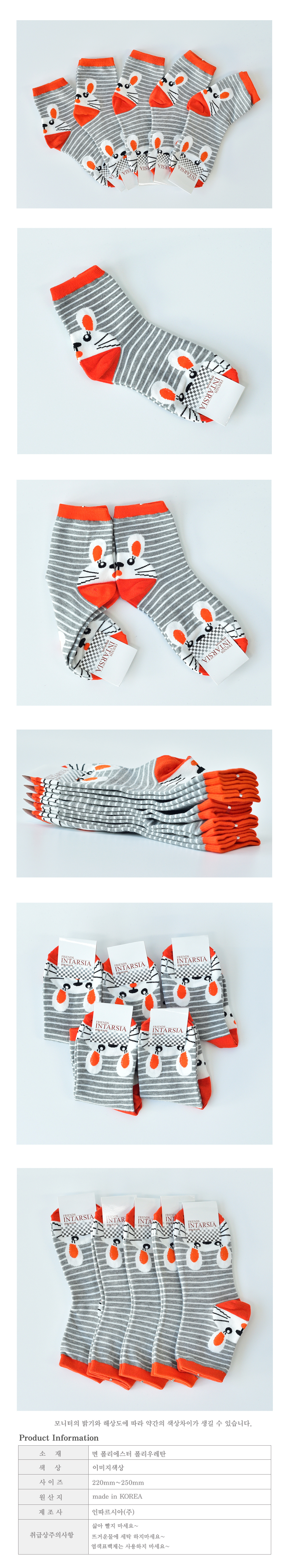 여성용 토끼 줄무늬 중목양말 여자양말(회색 5켤레) 이미지/