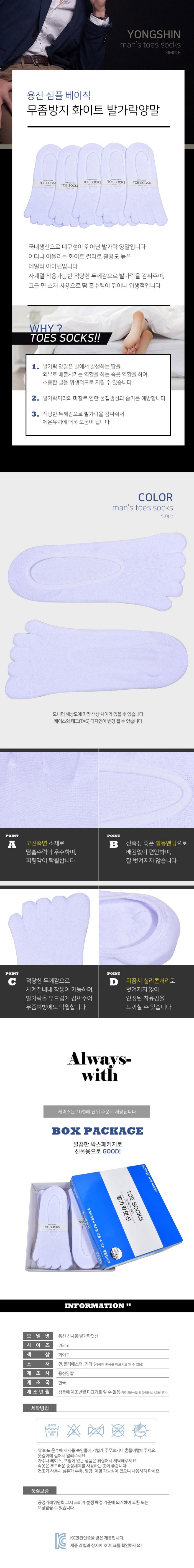 벗겨지지않는 흰색 발가락덧신 5켤레 여름용 양말세트 이미지/