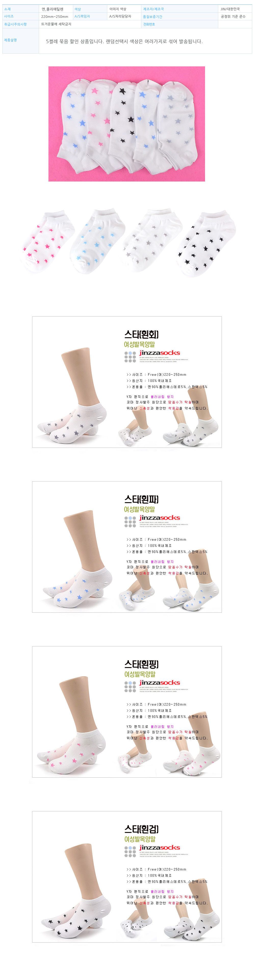 여성 패션 캐주얼 인기 발목 양말 별무늬 5켤레 묶음
