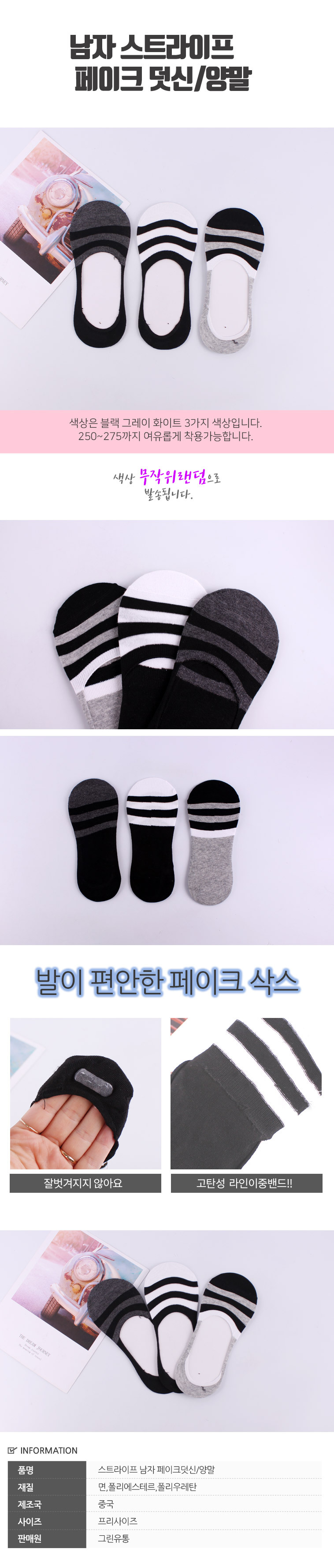 남자 페이크덧신 스트라이프(색상랜덤) 이미지/