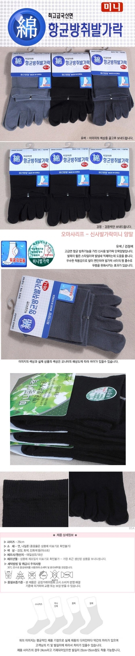 신사용 기능성 발가락 단목양말 5켤레 40대 발땀양말